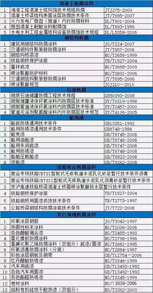 油漆涂料知識>>防腐漆標(biāo)準(zhǔn)大匯總
